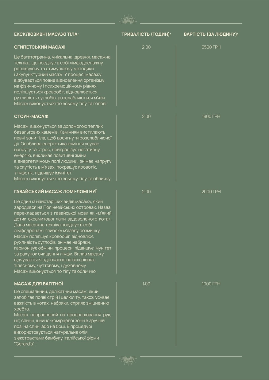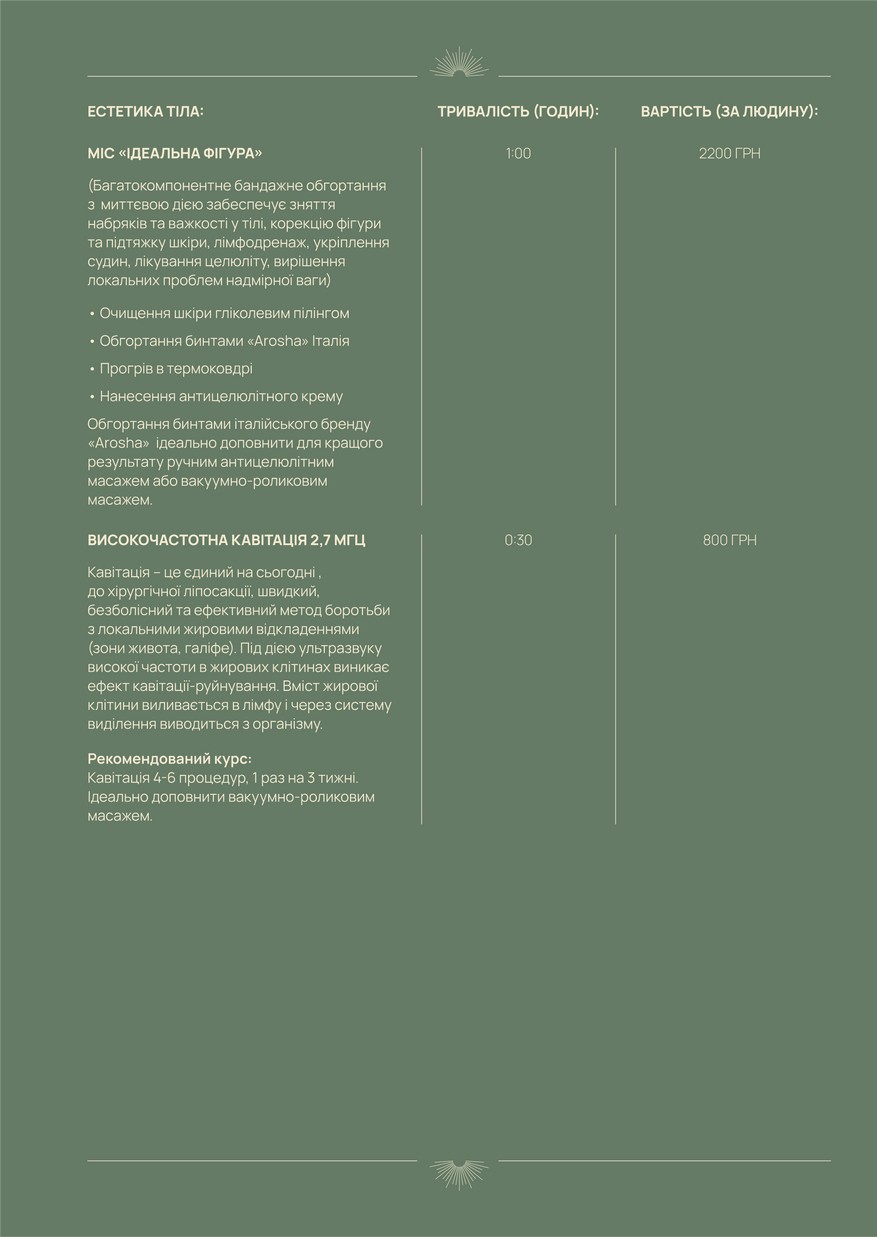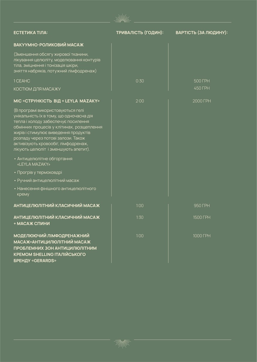 Наш спа-салон пропонує широкий спектр послуг, які допоможуть вам досягти бажаного результату.