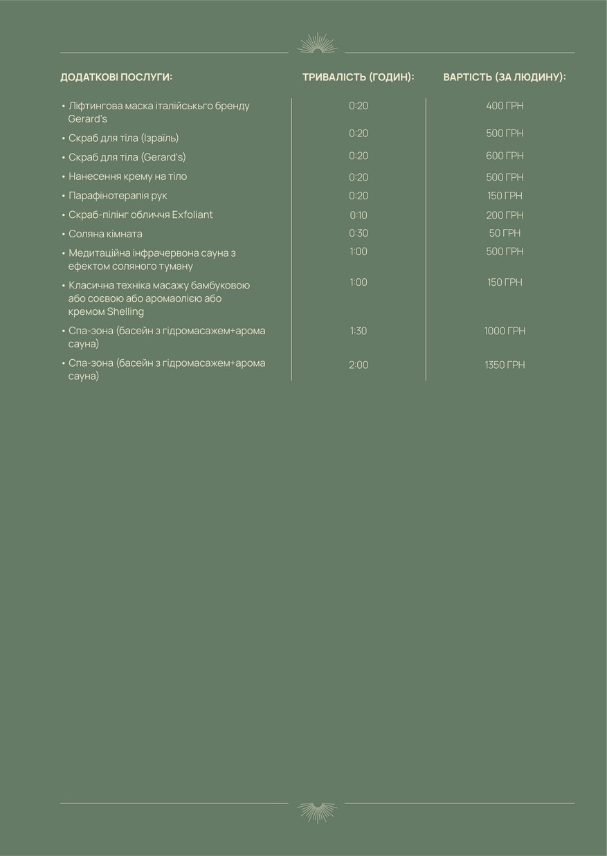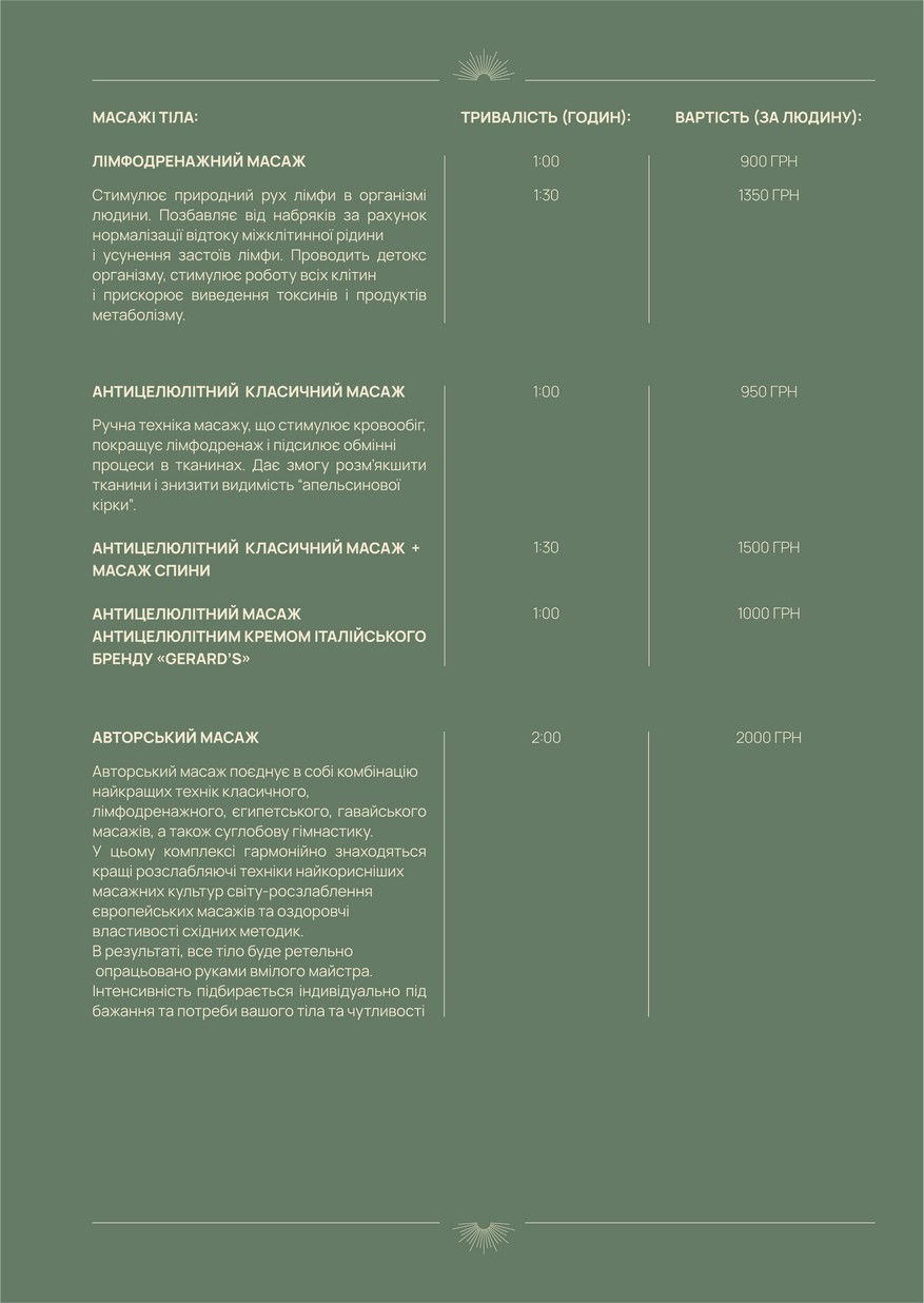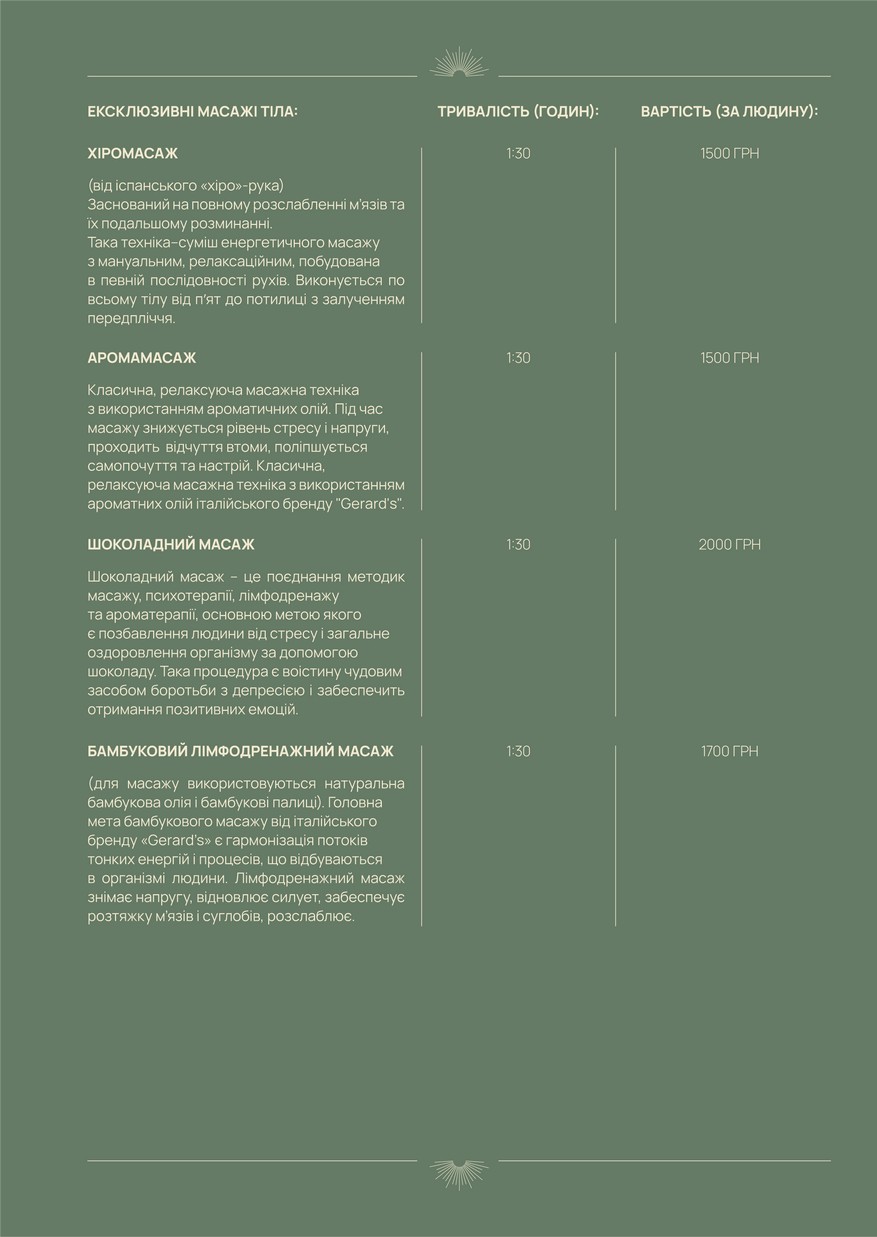 Наш спа-салон пропонує широкий спектр послуг, які допоможуть вам досягти бажаного результату.